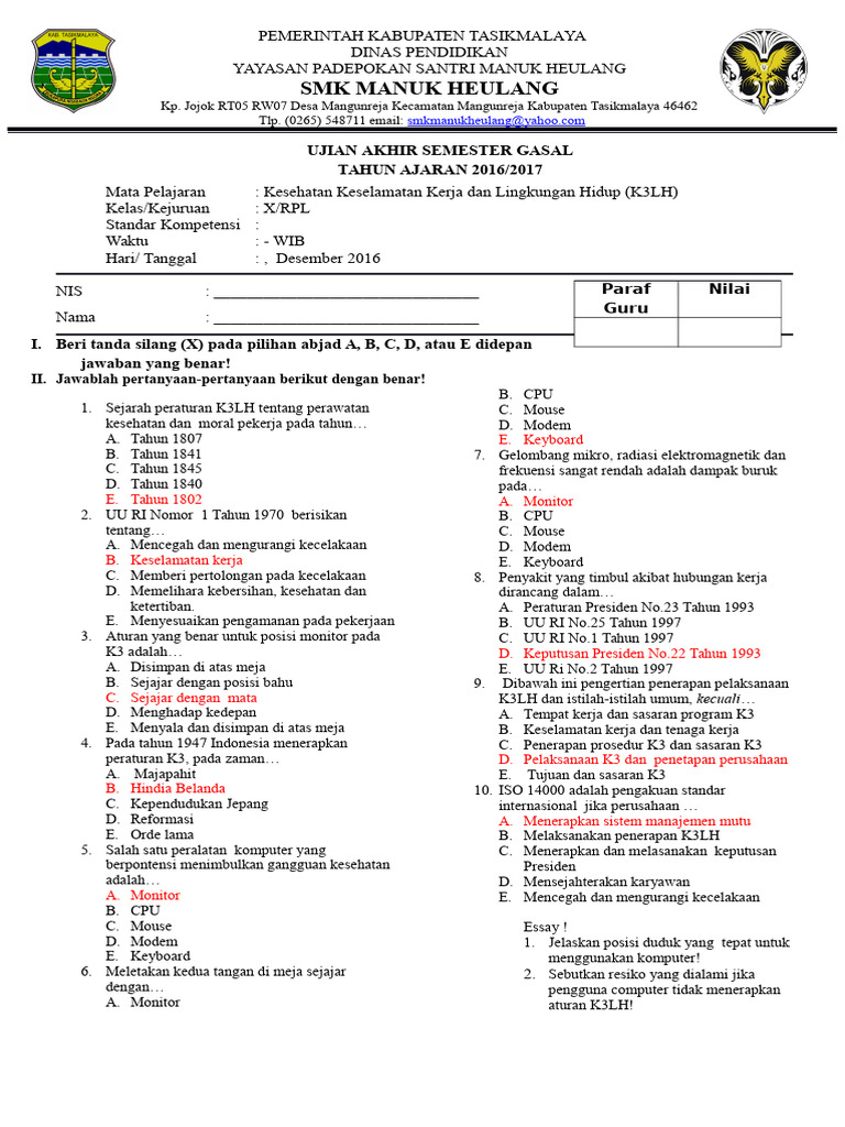 Memahami K3LH bukan hanya sekadar kewajiban akademis, melainkan investasi krusial untuk keselamatan diri, rekan kerja, dan keberlanjutan lingkungan di masa depan. Artikel ini akan membahas mengapa K3LH sangat penting, materi pokok yang diajarkan di kelas 10, serta menyajikan berbagai contoh soal dan jawaban yang komprehensif untuk membantu siswa mempersiapkan diri menghadapi evaluasi dan, yang lebih penting, mengaplikasikan prinsip-prinsip K3LH dalam kehidupan sehari-hari maupun profesional.