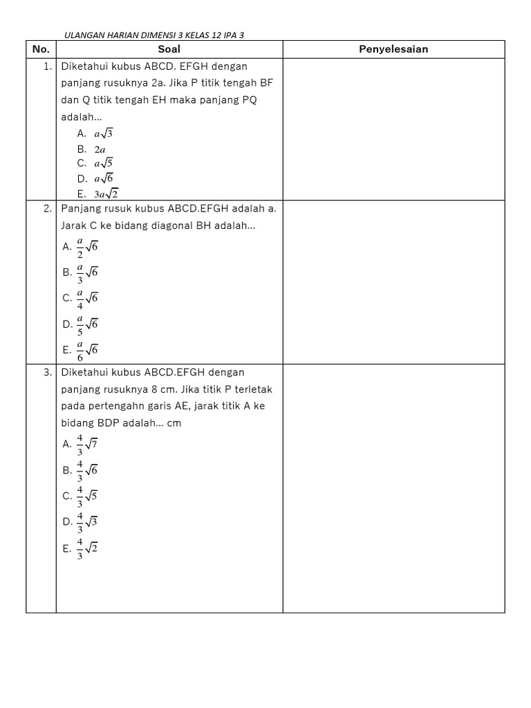 Artikel ini akan membahas konsep dasar, strategi umum, dan menyajikan beberapa contoh soal beserta pembahasannya secara rinci, fokus pada materi jarak dan sudut dalam bangun ruang.